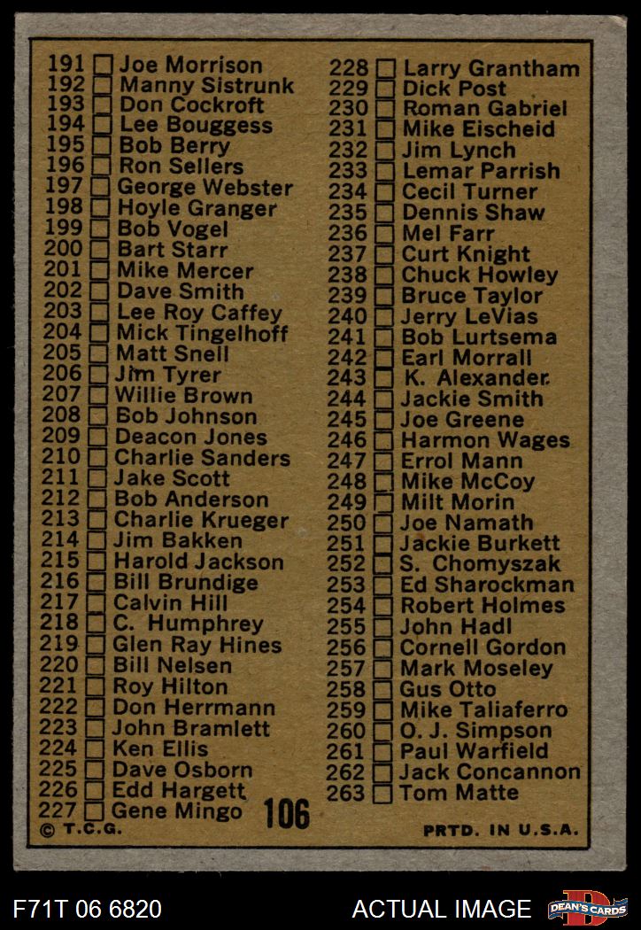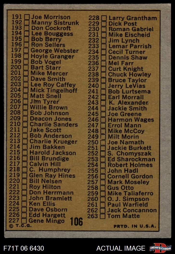 1971 Topps #106 Checklist 2