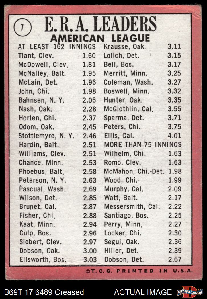 1969 Topps #7 AL ERA Leaders