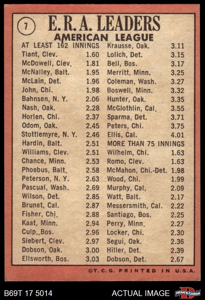 1969 Topps #7 - Luis Tiant / Sam McDowell / Dave McNally AL ERA Leaders 2.5 - GD+