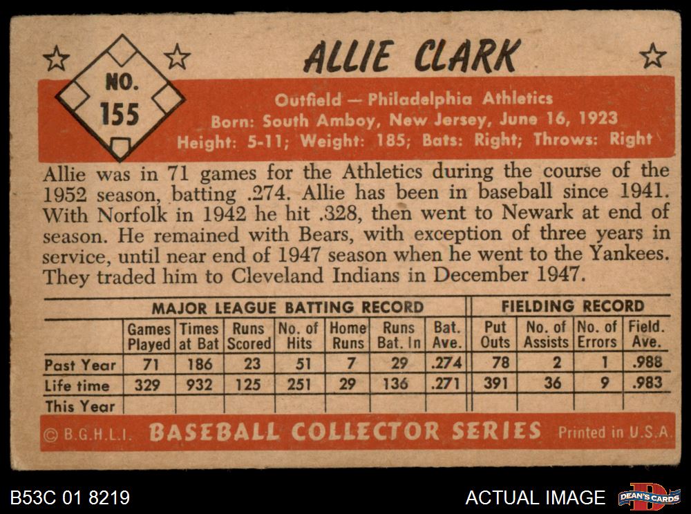 1953 Bowman #155 Allie Clark 2 - GOOD