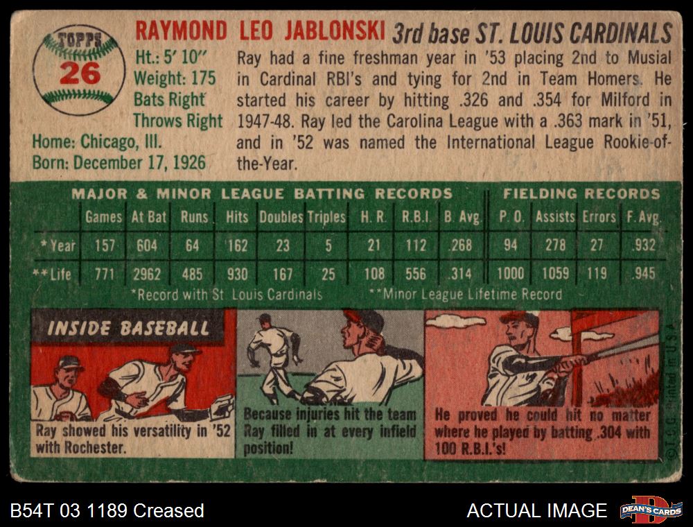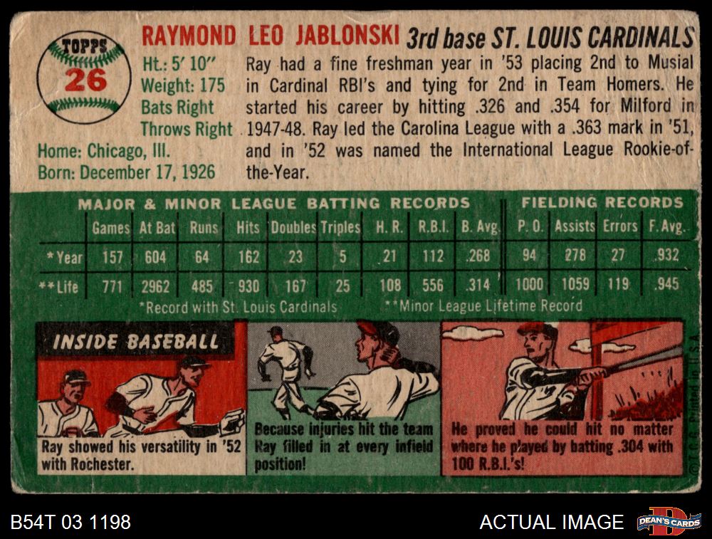 1954 Topps #26 WHT Ray Jablonski