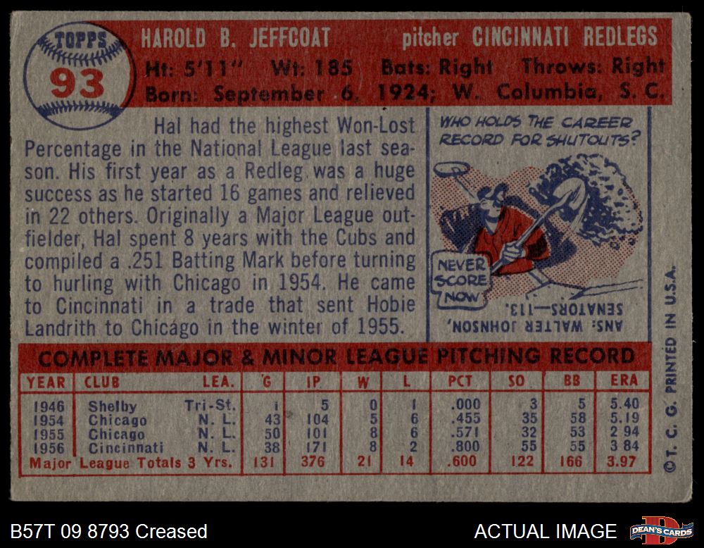 1957 Topps #93 Hal Jeffcoat 2 - GOOD
