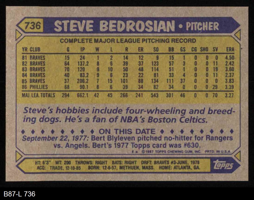 1987 Topps #736 Steve Bedrosian 8 - NM/MT