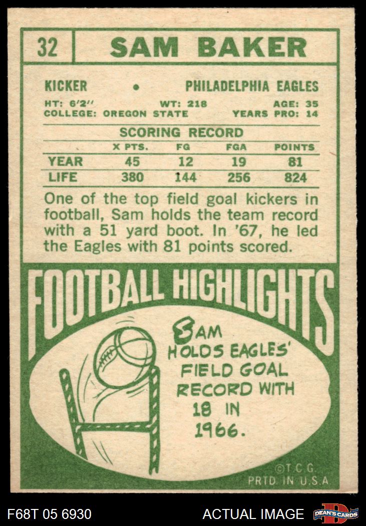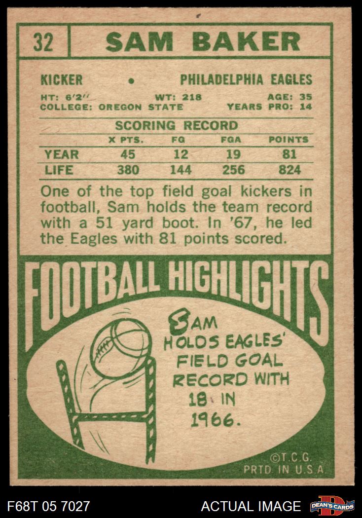 1968 Topps Football Cards (2,555 available)1968 Topps Eagles (131 available)