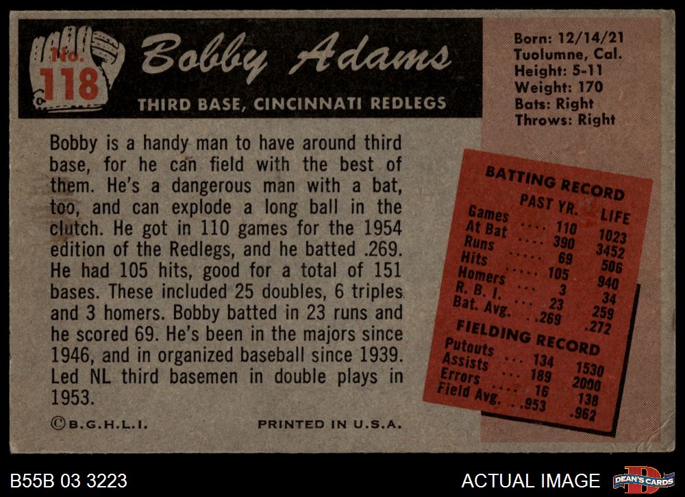 1955 Bowman #118 Bobby Adams