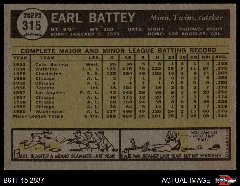 1961 Topps #315 Earl Battey 4.5 - VG/EX+