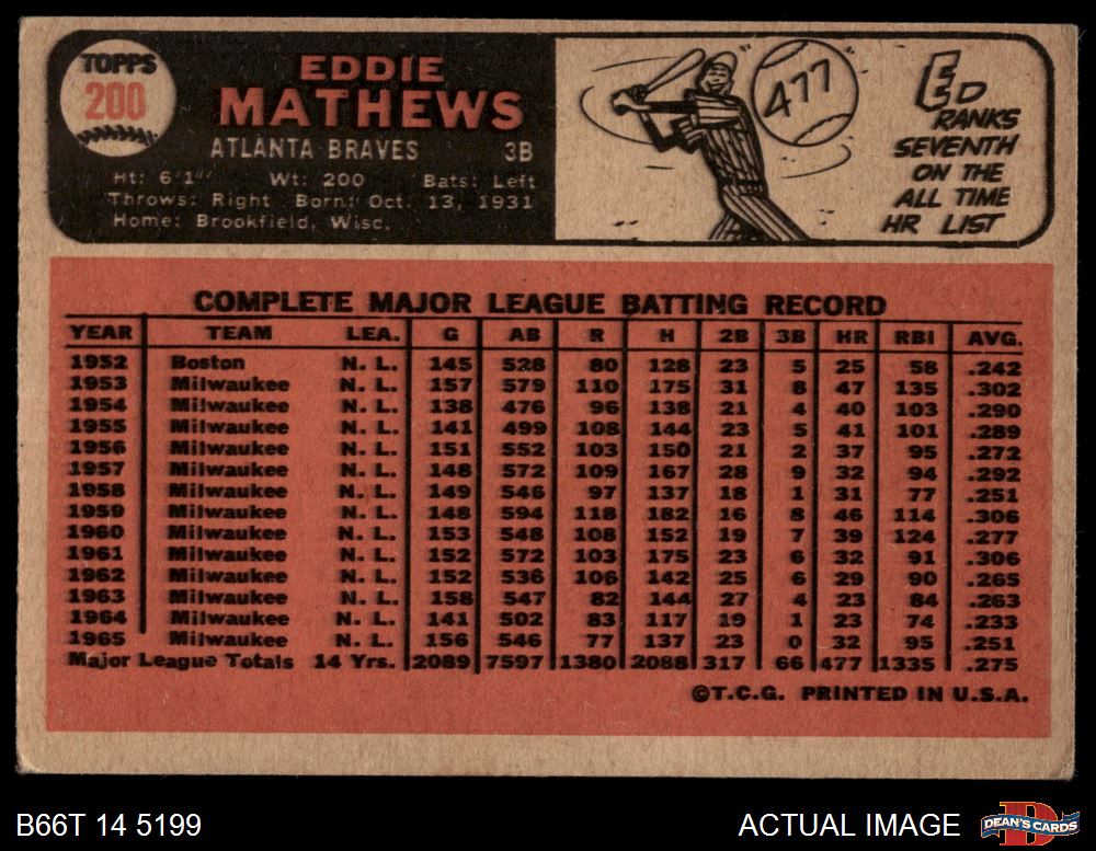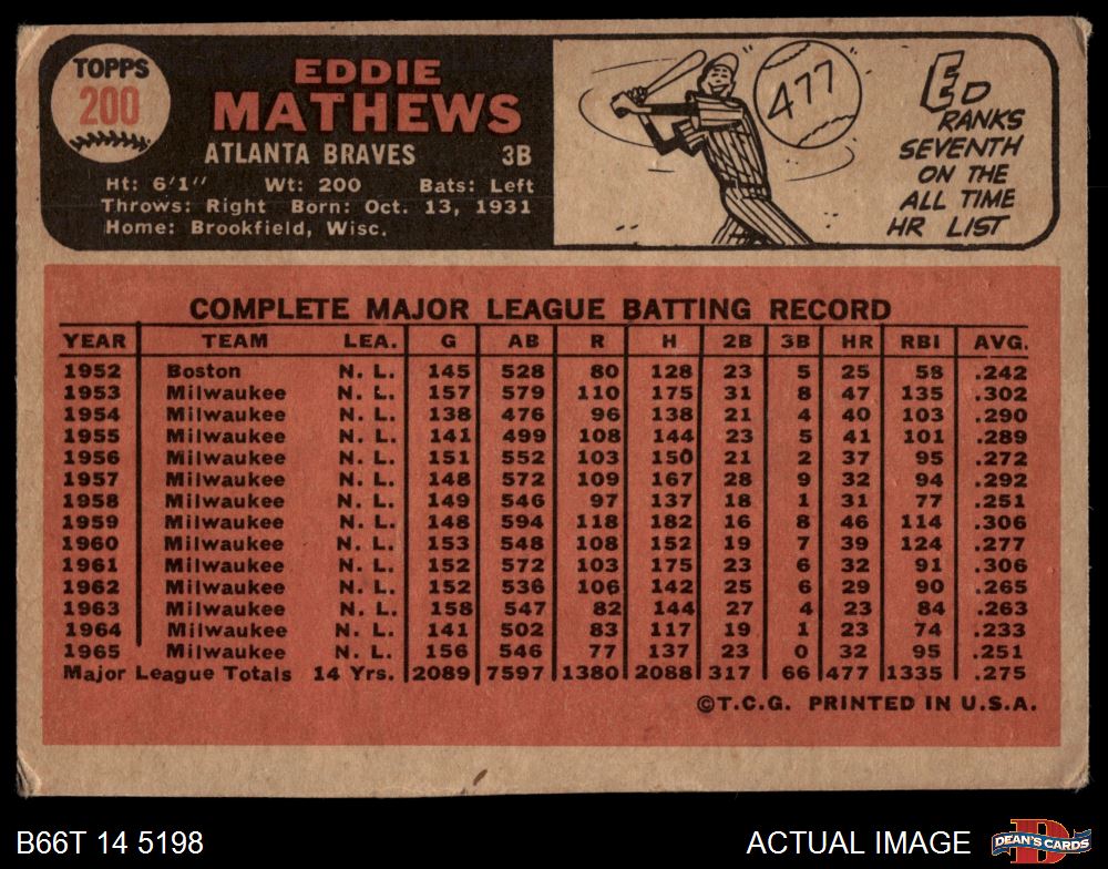 1966 Topps #200 Eddie Mathews 2 - GOOD