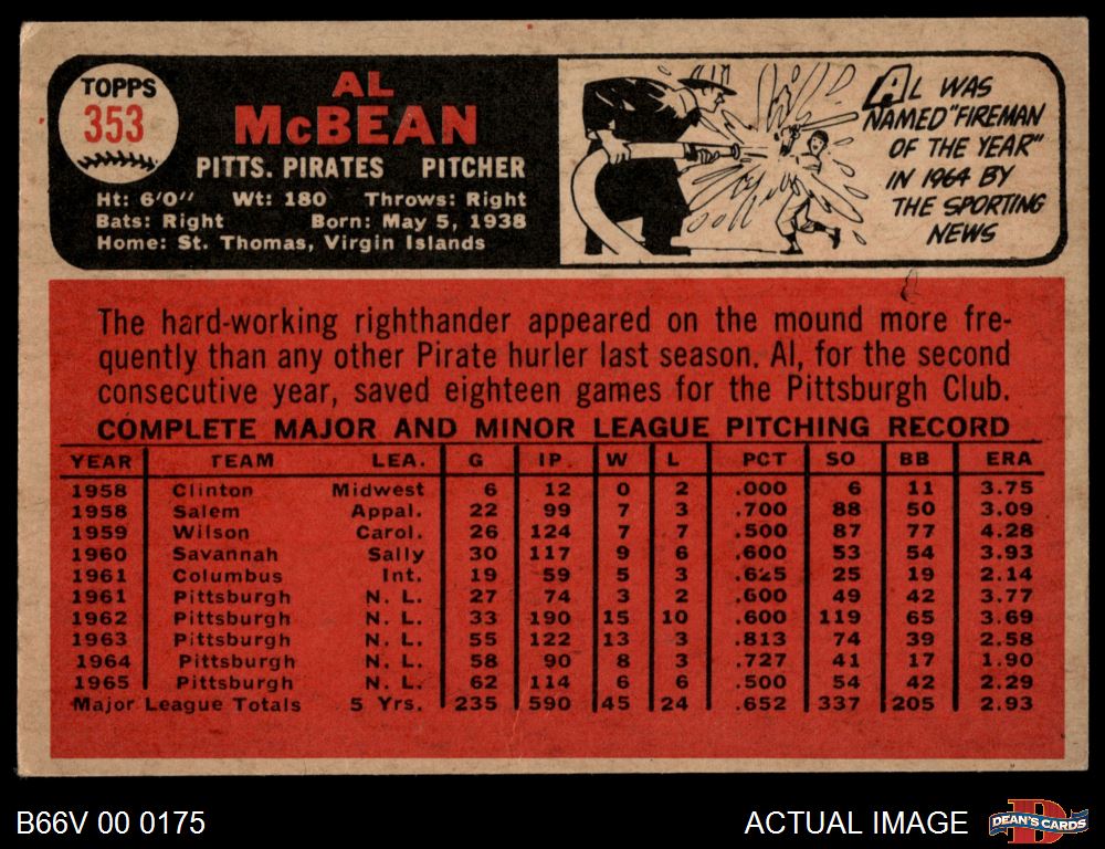 1966 Topps Venezuelan #353 Al McBean 5 - EX