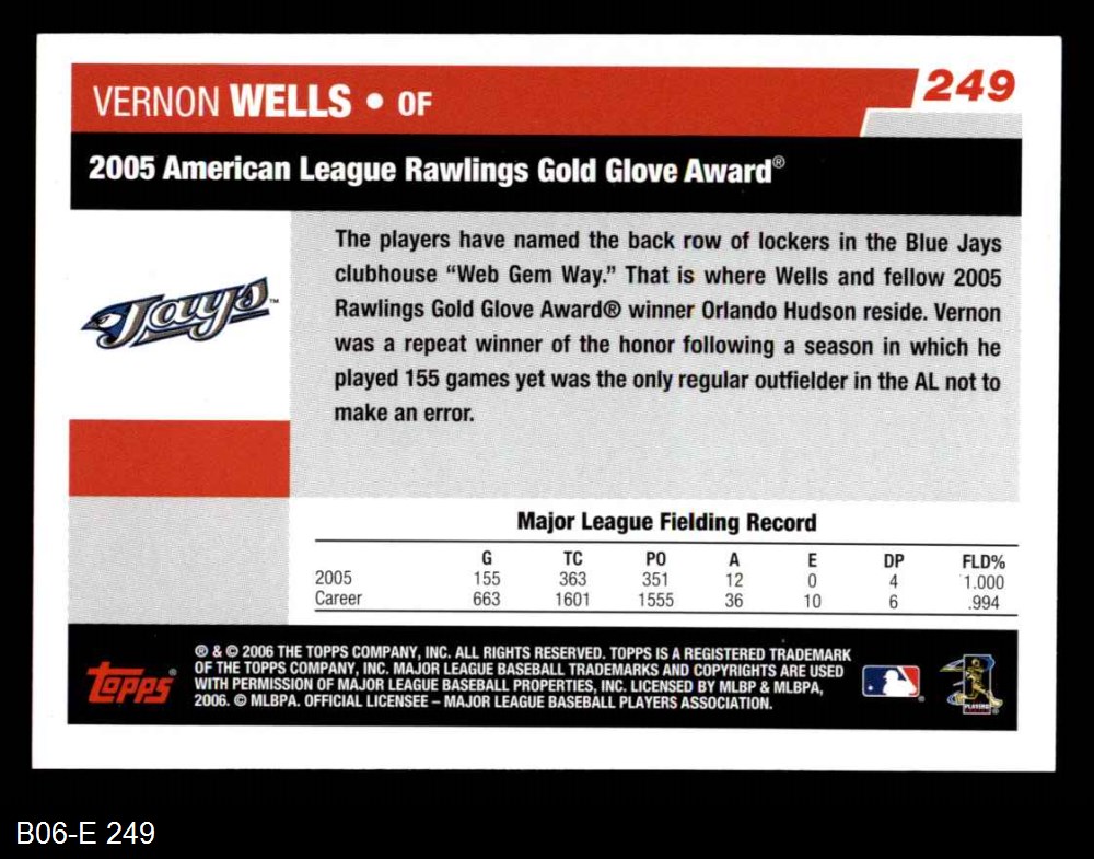 2006 Topps #249 - Vernon Wells Golden Glove Award 8 - NM/MT