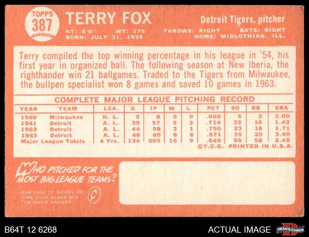 1964 Topps #387 Terry Fox