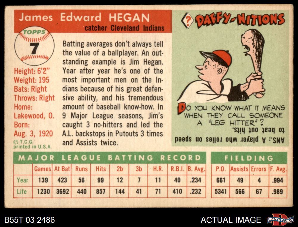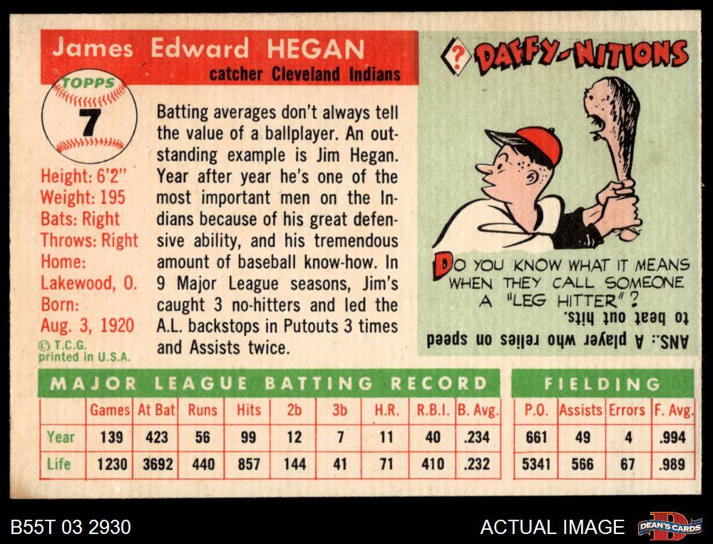 1955 Topps #7 Jim Hegan