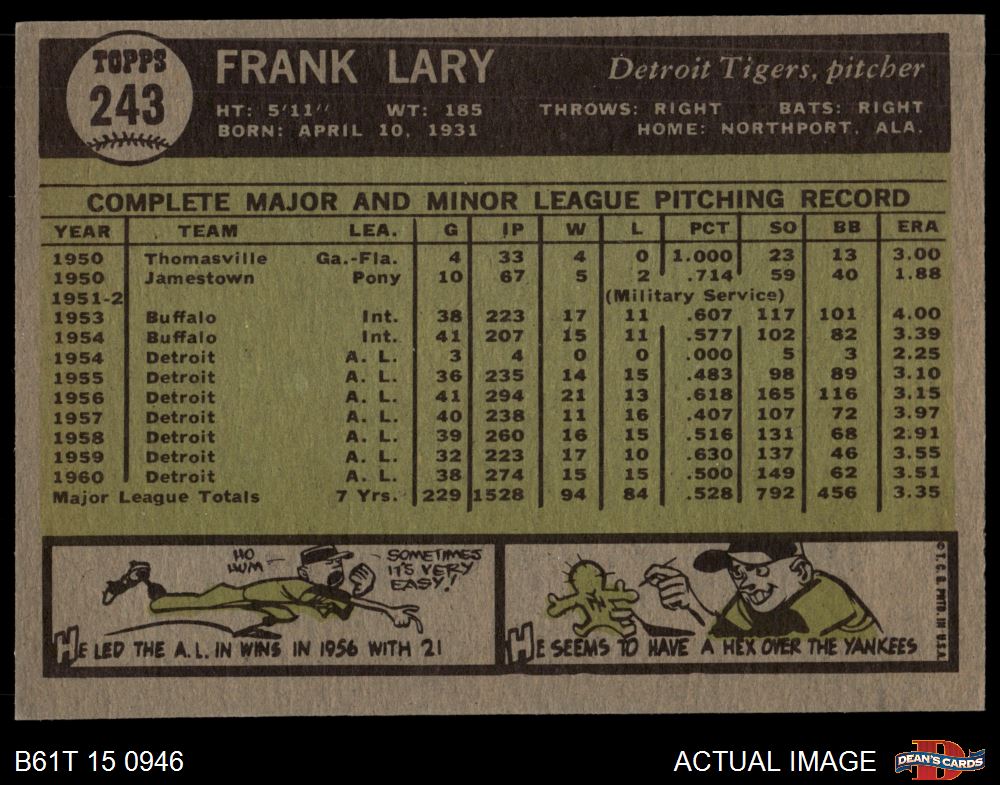 1961 Topps #243 Frank Lary 6 - EX/MT