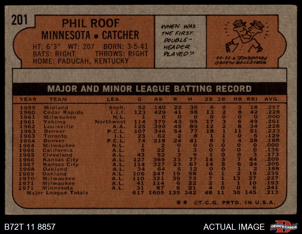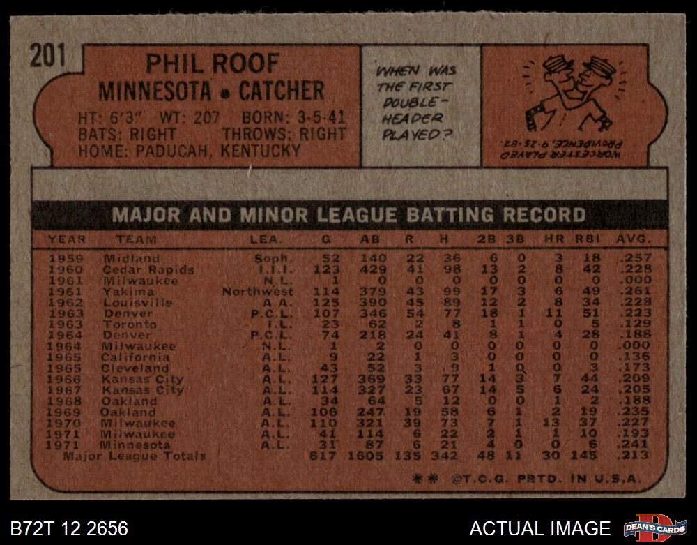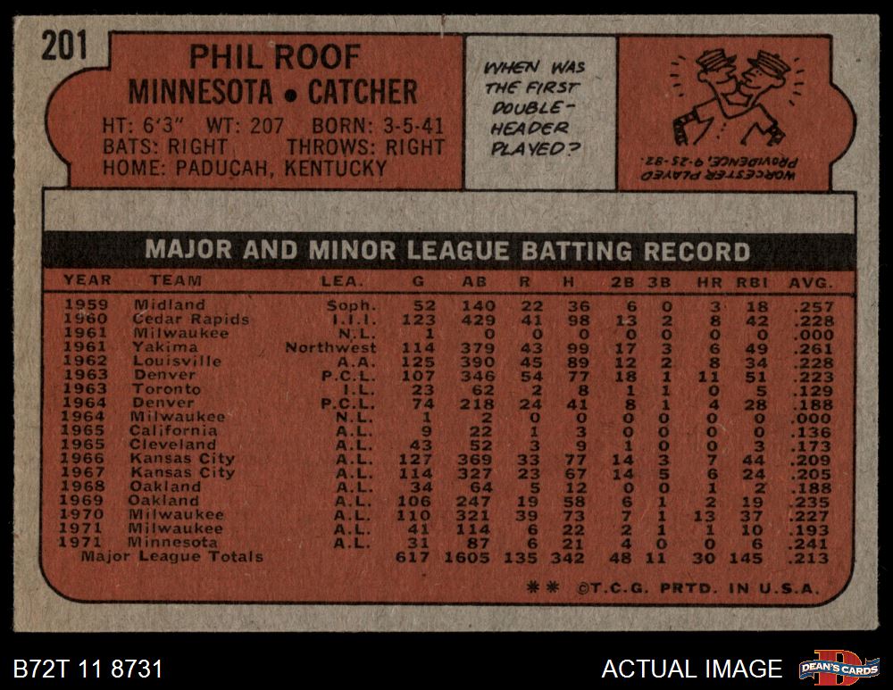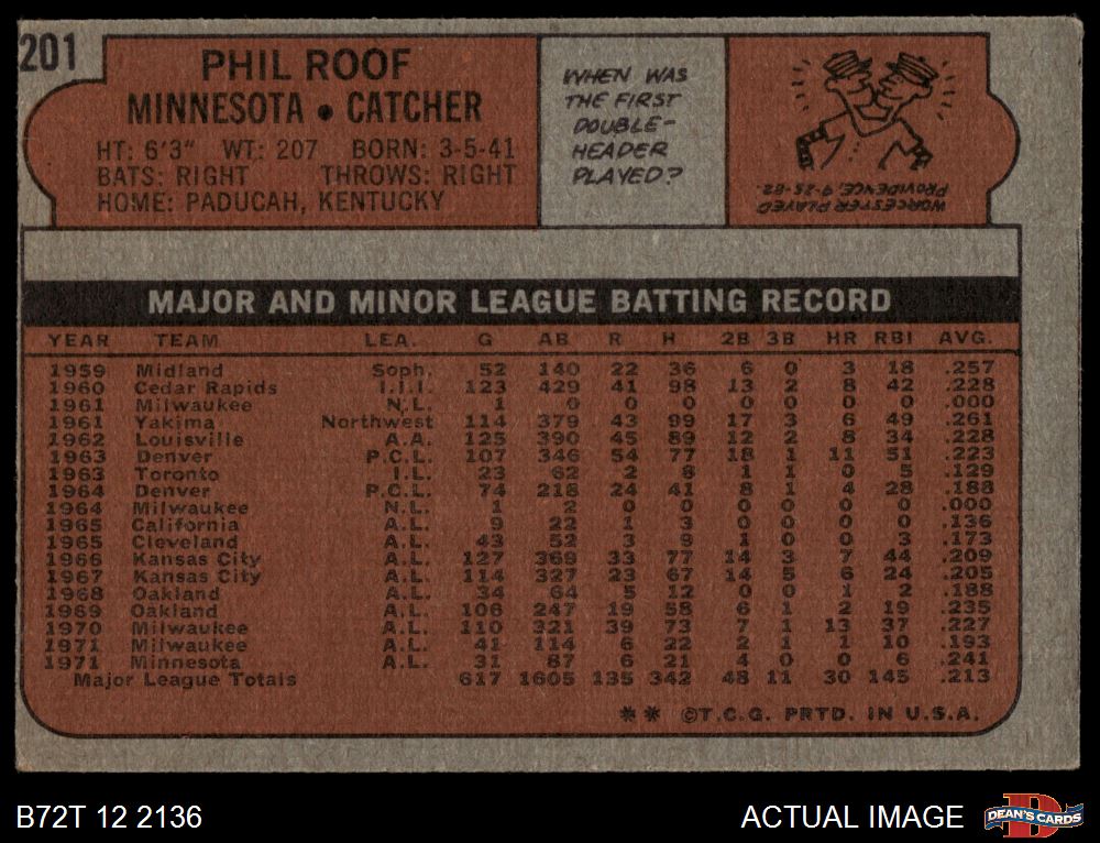 1972 Topps #201 Phil Roof