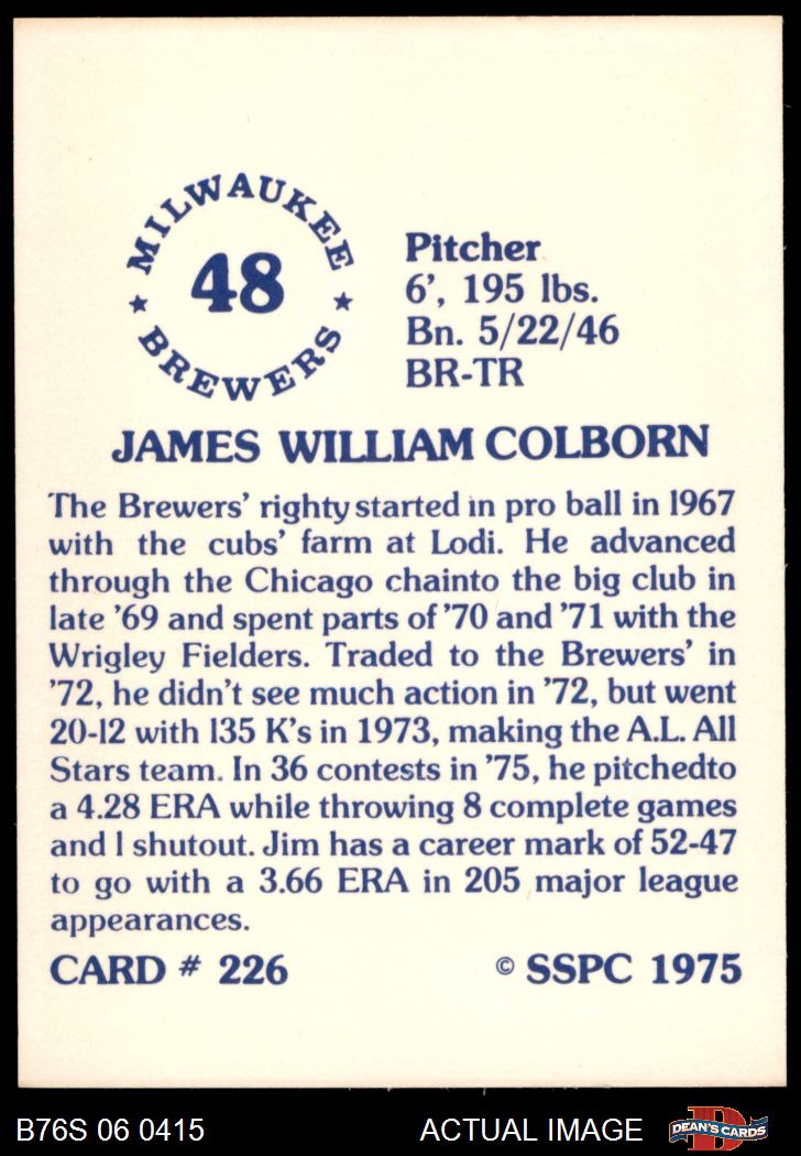 1975 SSPC #226 Jim Colborn 8 - NM/MT