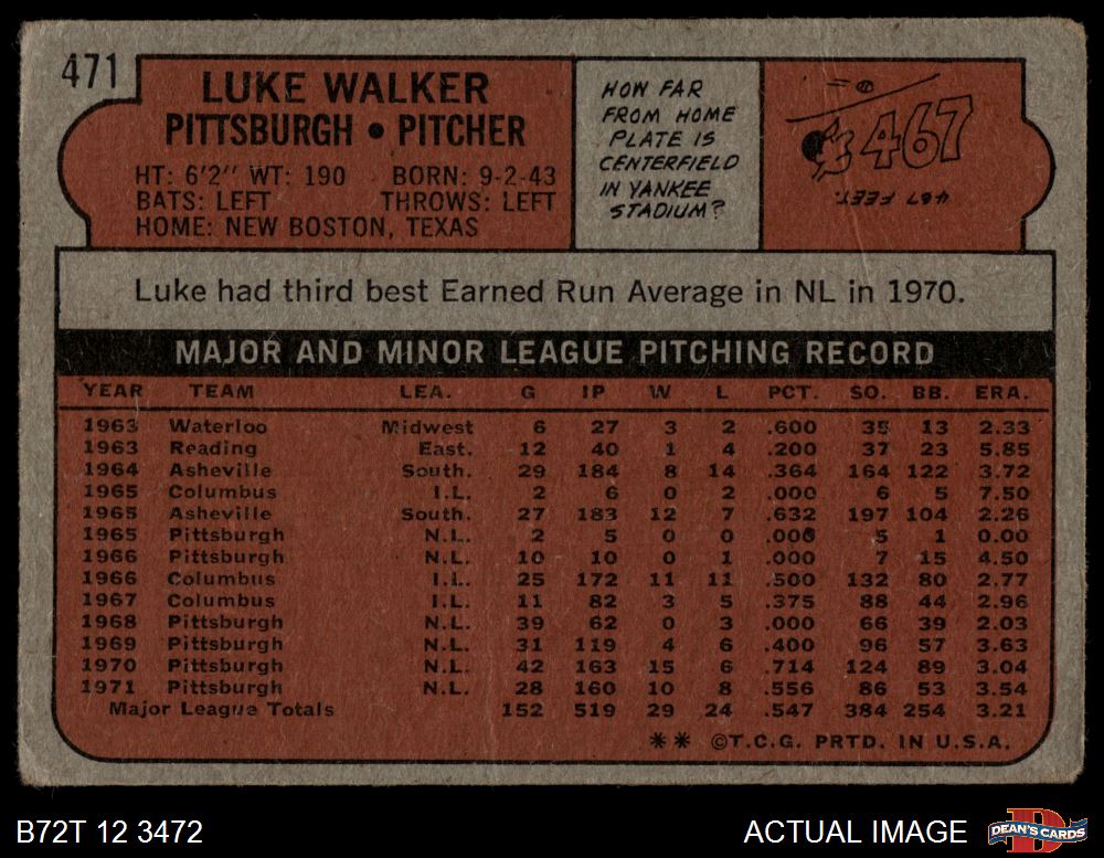 1972 Topps #471 Luke Walker 1 - POOR
