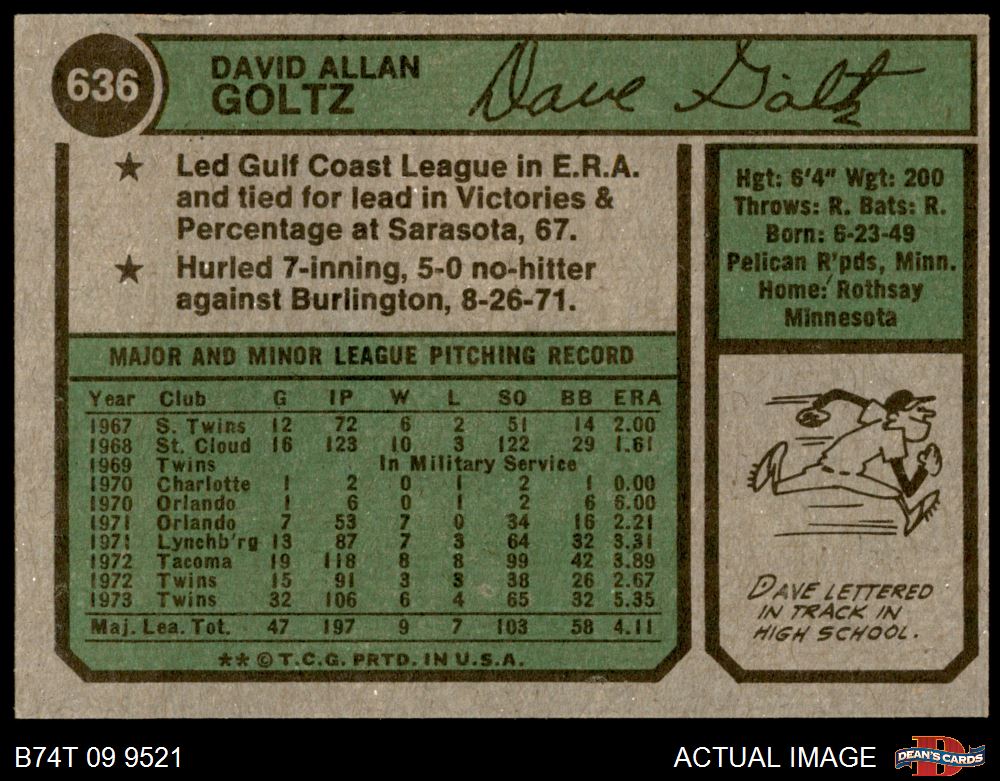 1974 Topps #636 Dave Goltz 6 - EX/MT