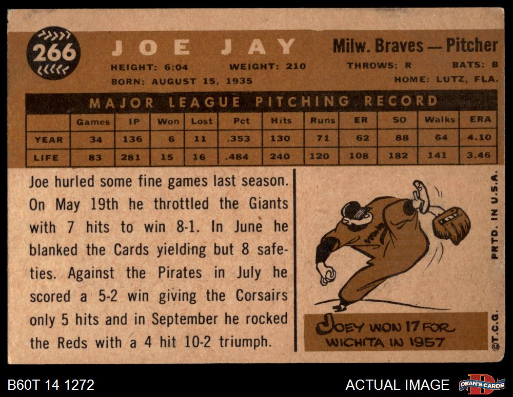1960 Topps #266 Joey Jay 2 - GOOD