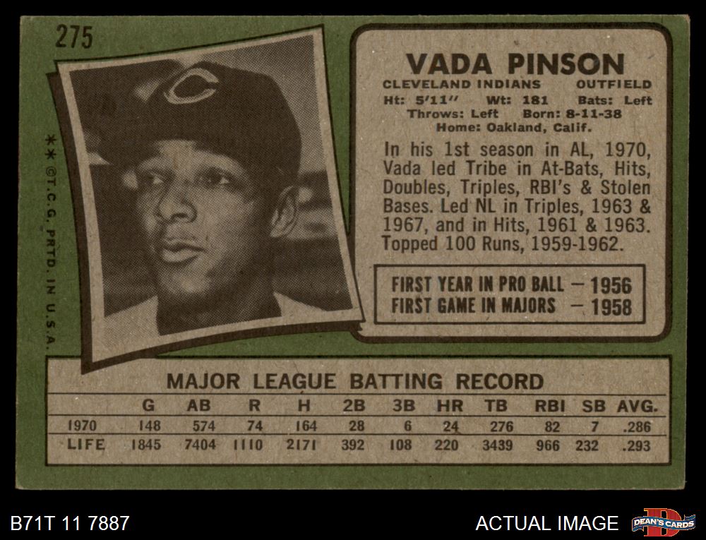 1971 Topps #275 Vada Pinson 4 - VG/EX