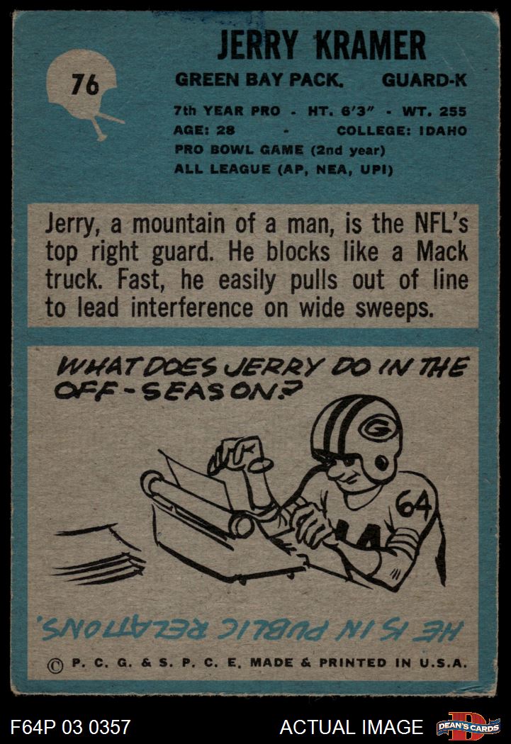 1964 Philadelphia #76 Jerry Kramer 3 - VG