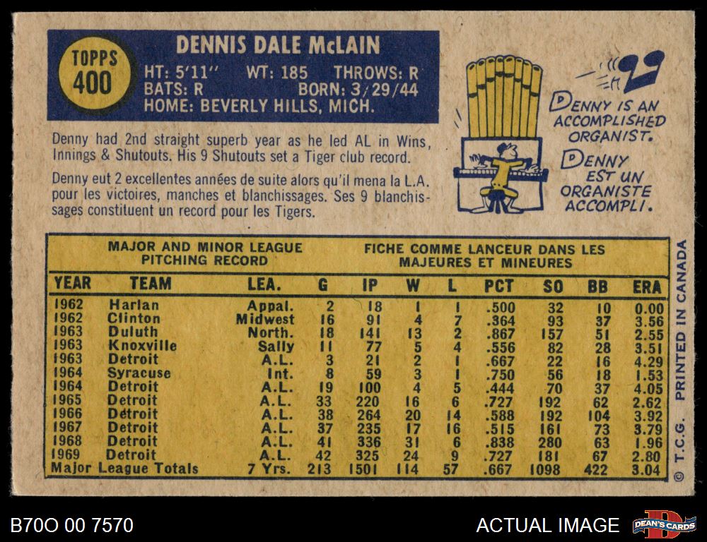 1970 O-Pee-Chee #400 Denny McLain