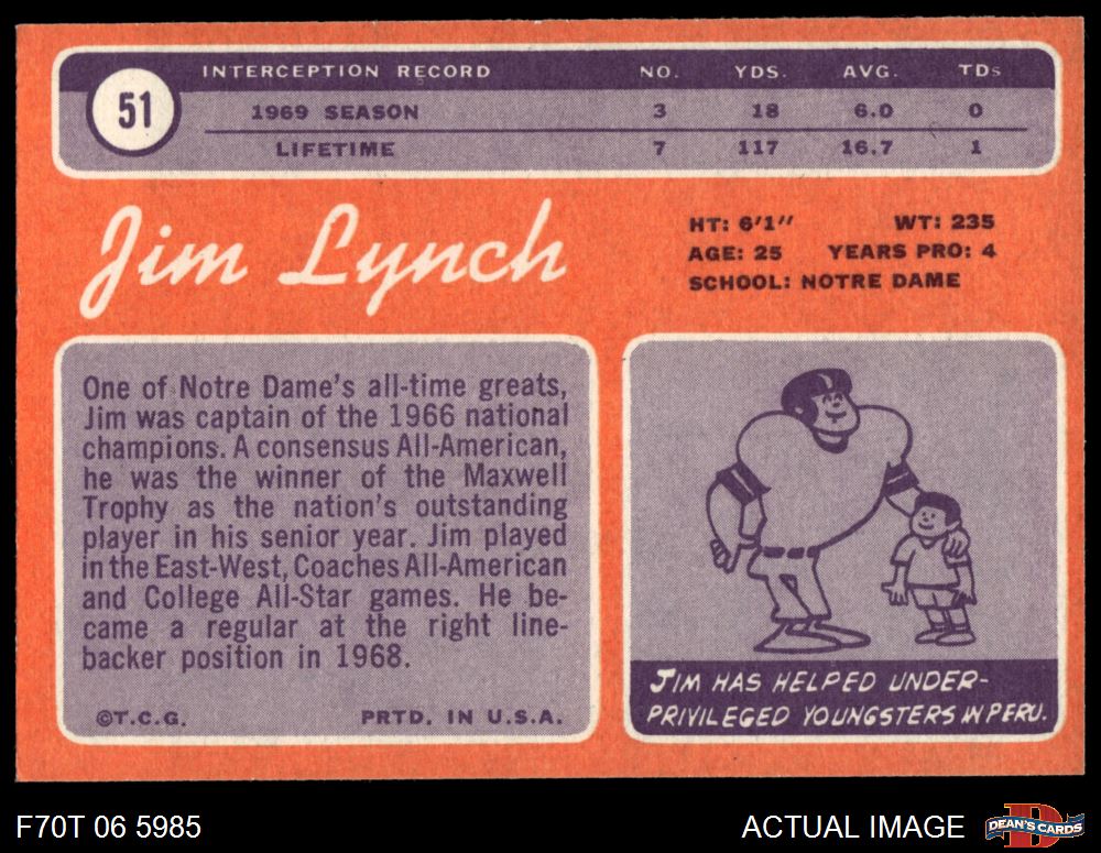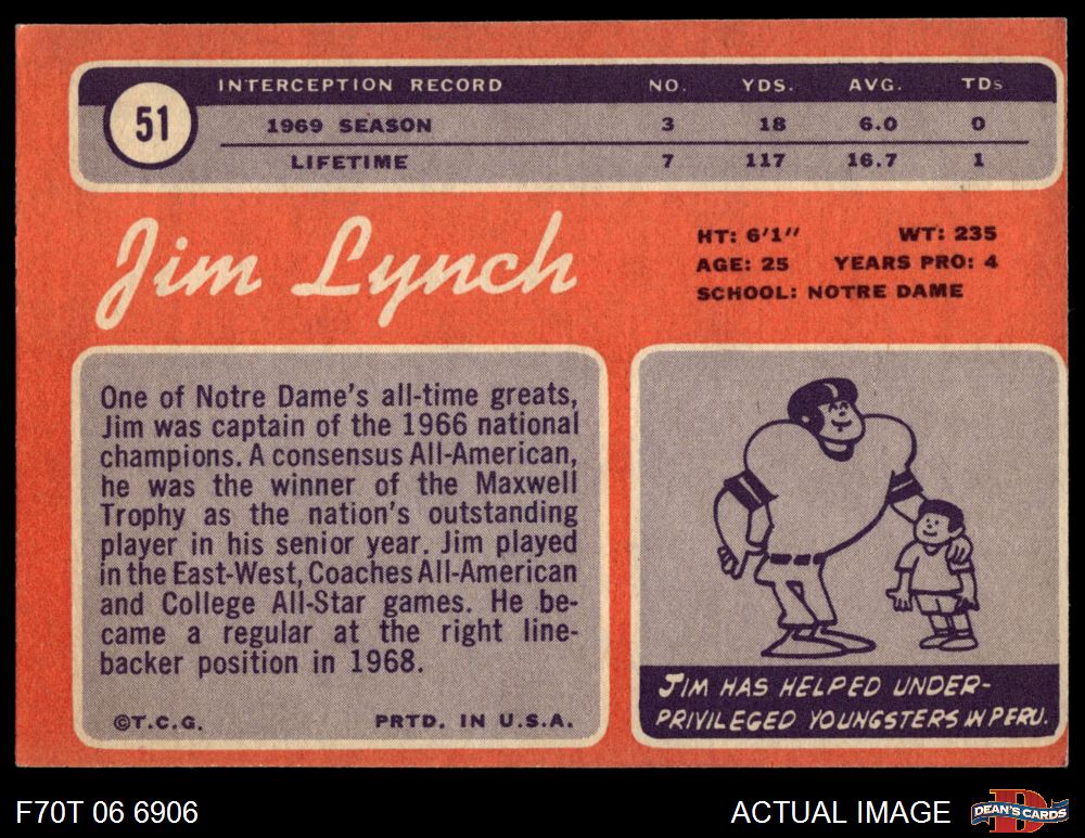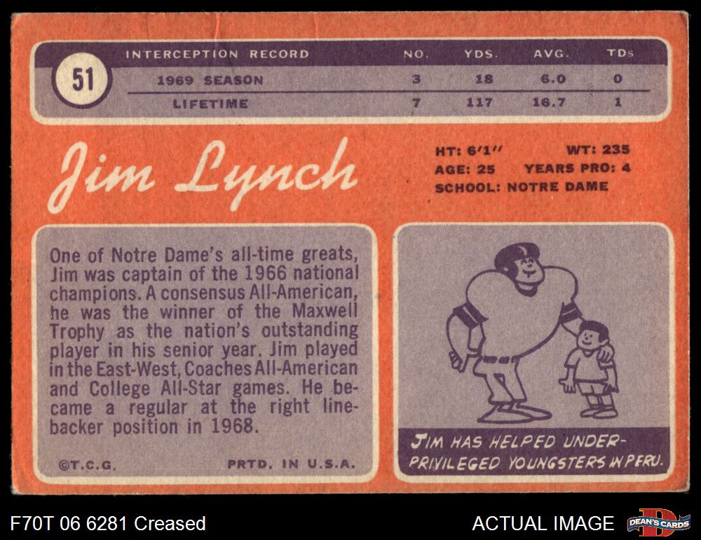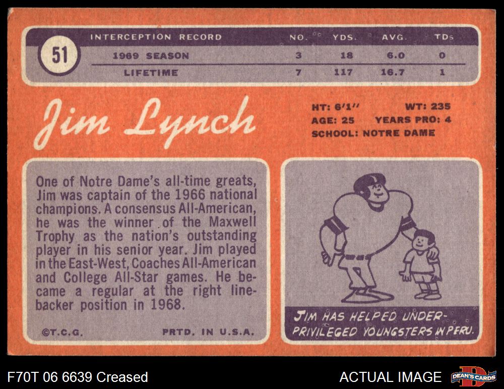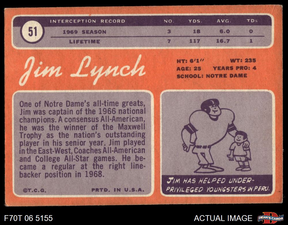 1970 Topps #51 Jim Lynch 3 - VG