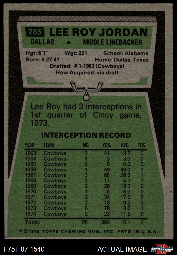 1975 Topps #285 Lee Roy Jordan 7 - NM
