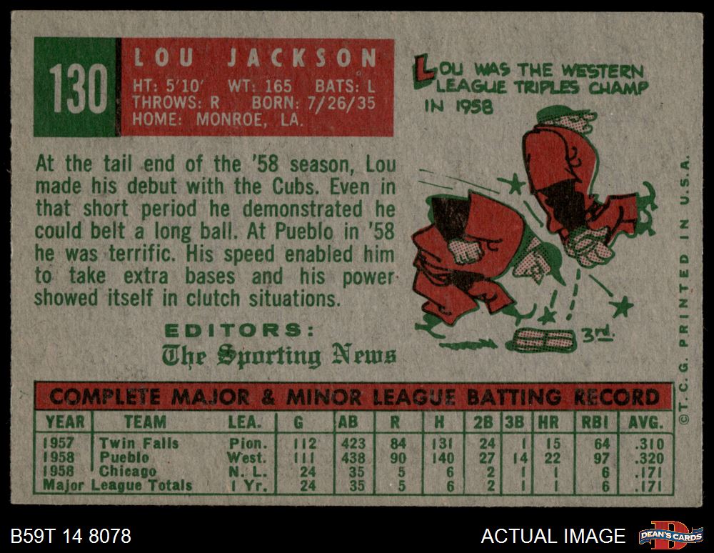 1959 Topps #130 Lou Jackson 6 - EX/MT