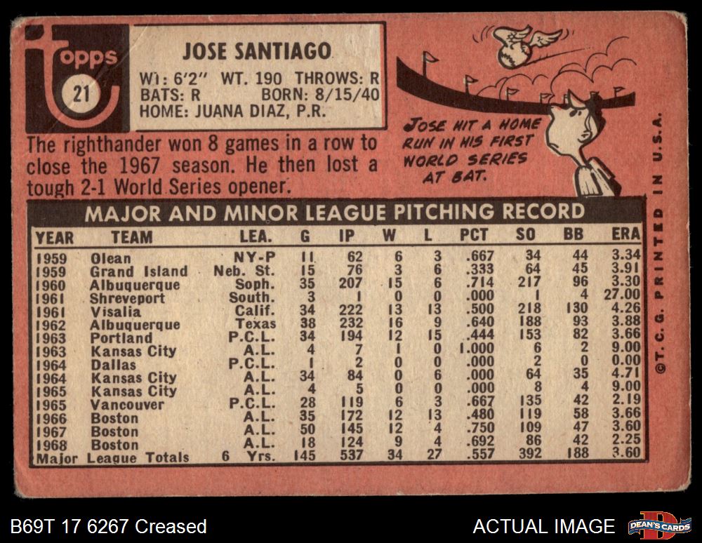 1969 Topps #21 Jose Santiago Front Thumbnail