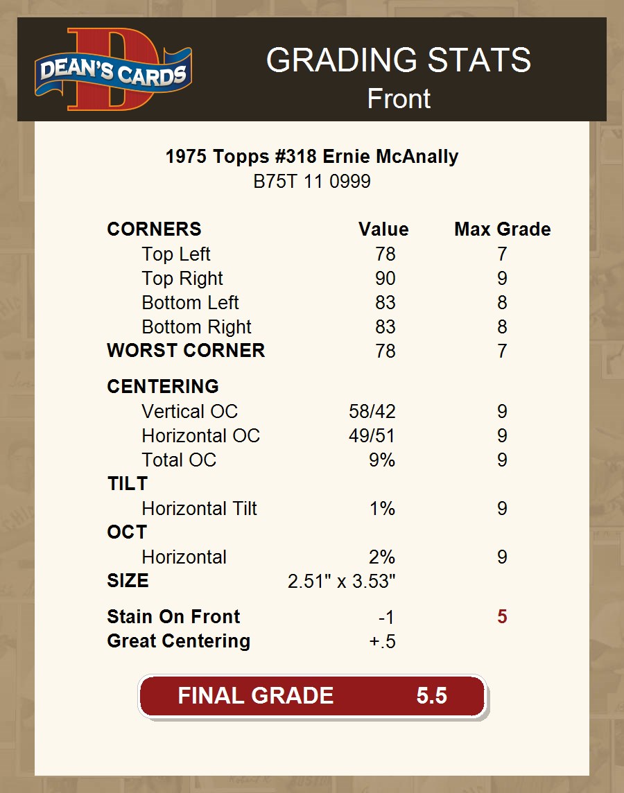 1975 Topps #318 Ernie McAnally 5.5 - EX+