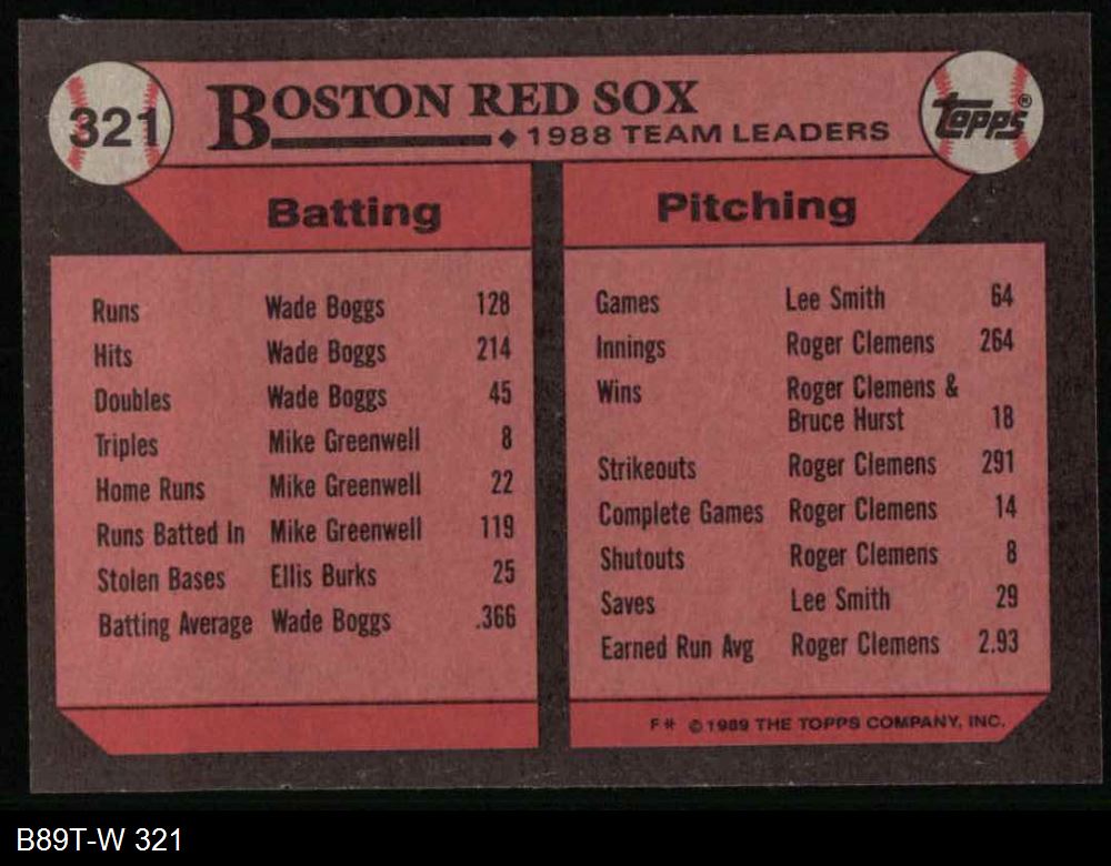 1989 Topps #321 - Jody Reed Red Sox Leaders 8 - NM/MT