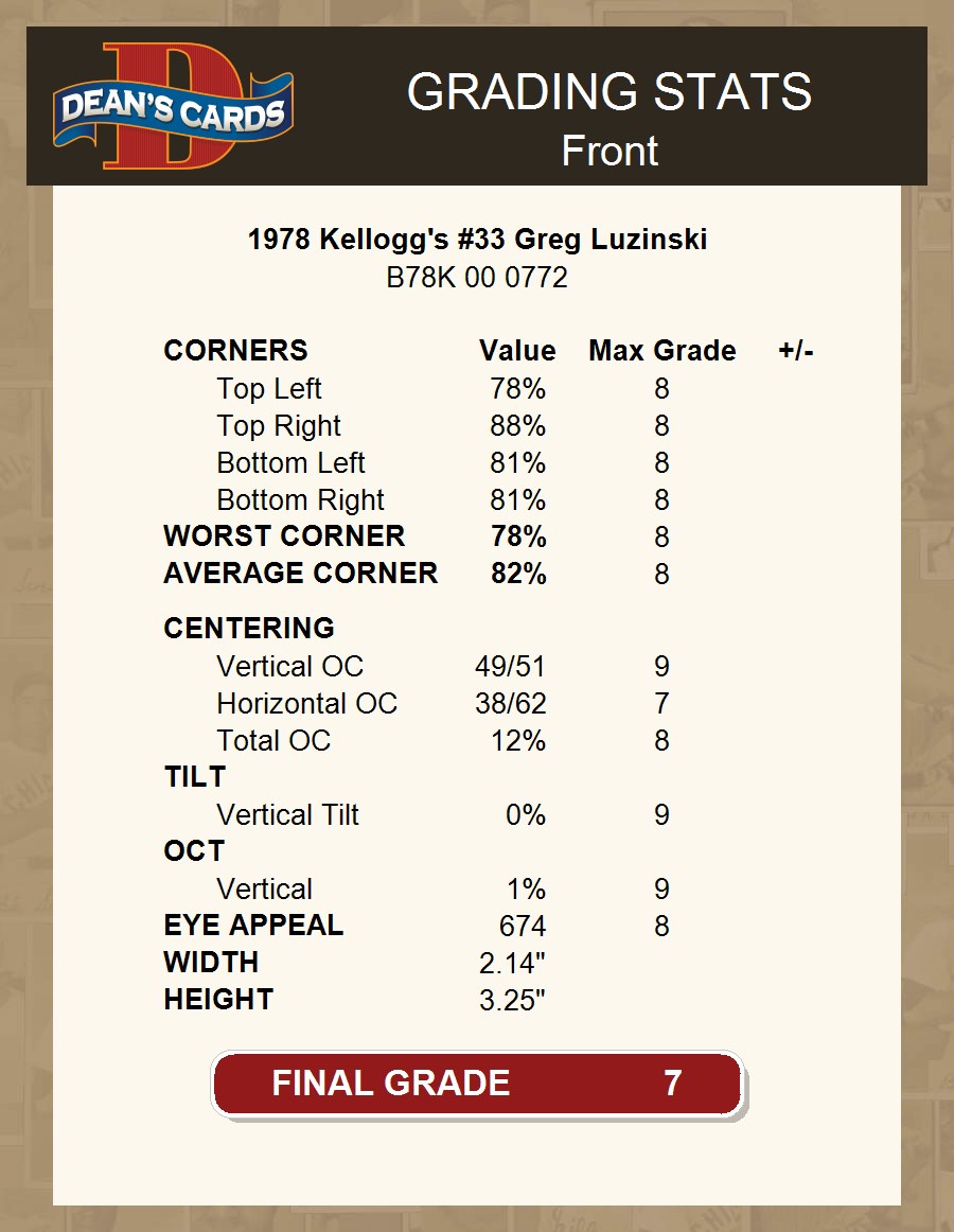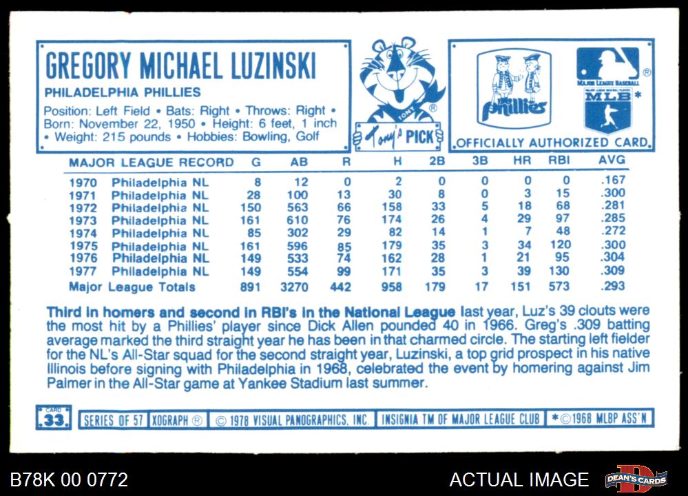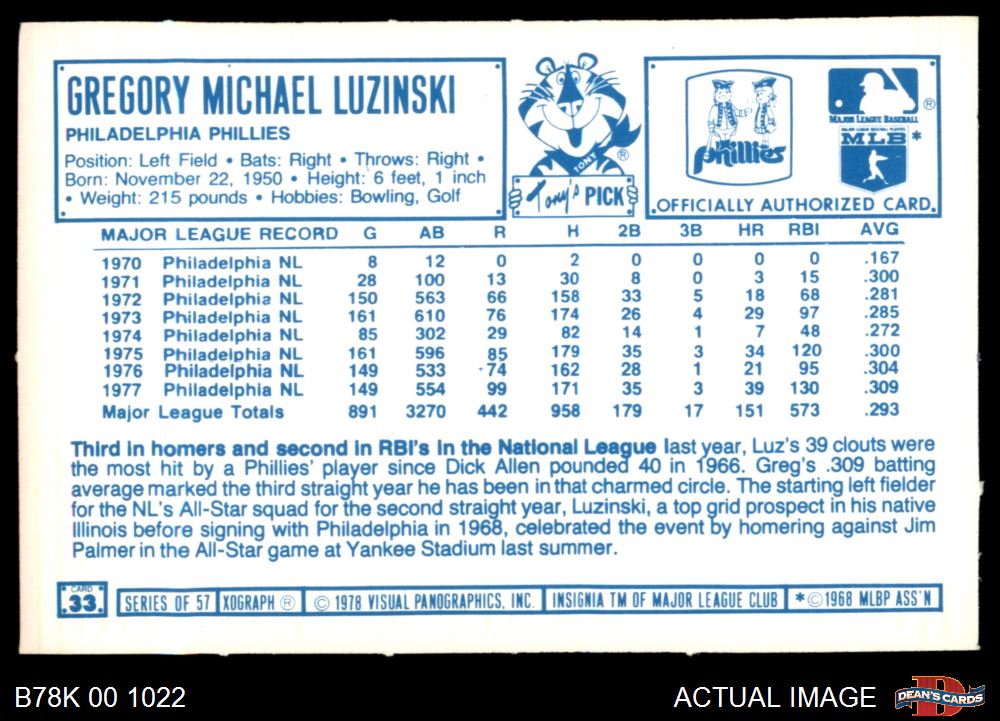 1978 Kellogg's #33 Greg Luzinski 7 - NM