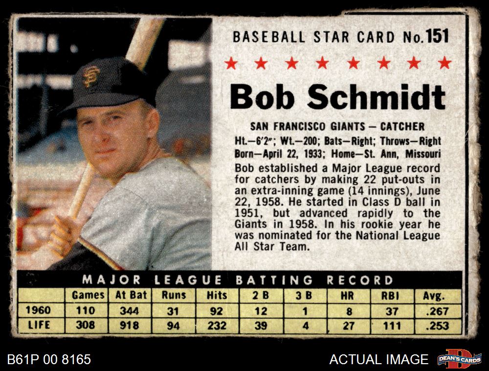 1961 Post Cereal #151 Bob Schmidt