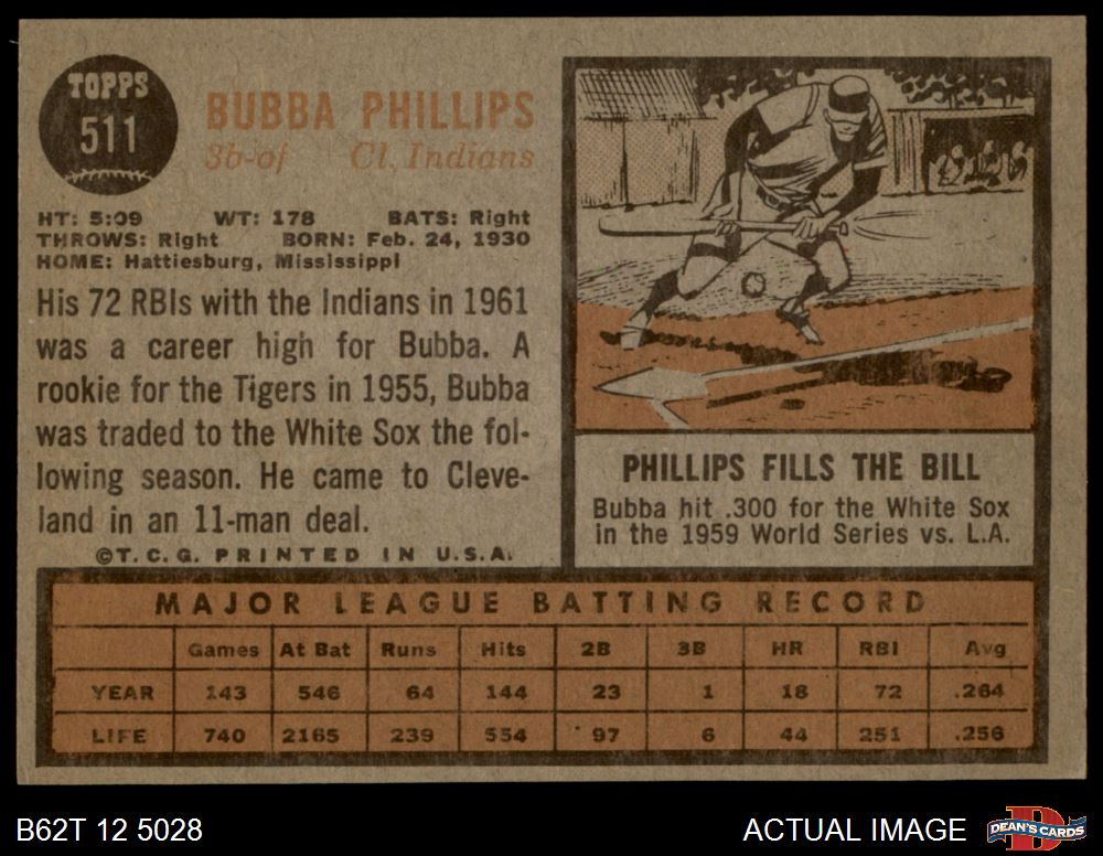 1962 Topps #511 Bubba Phillips 5 - EX