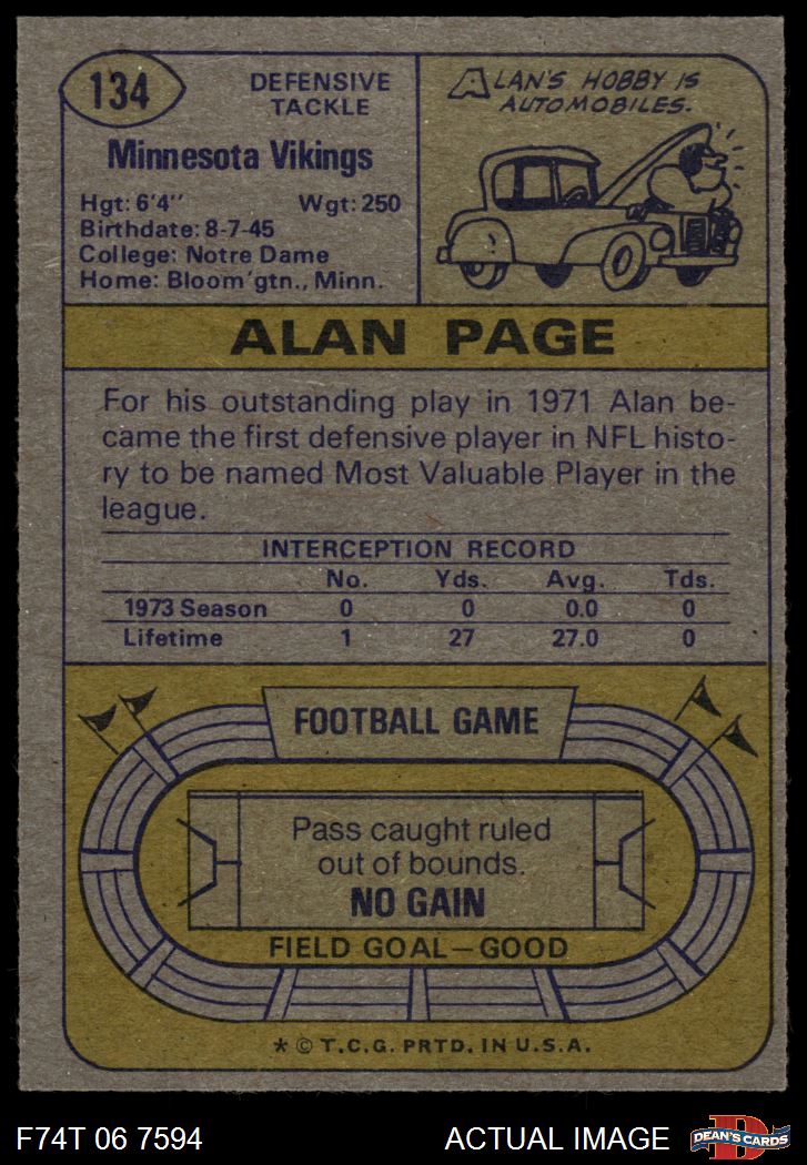 1974 Topps #134 - Alan Page All-Pro 4 - VG/EX