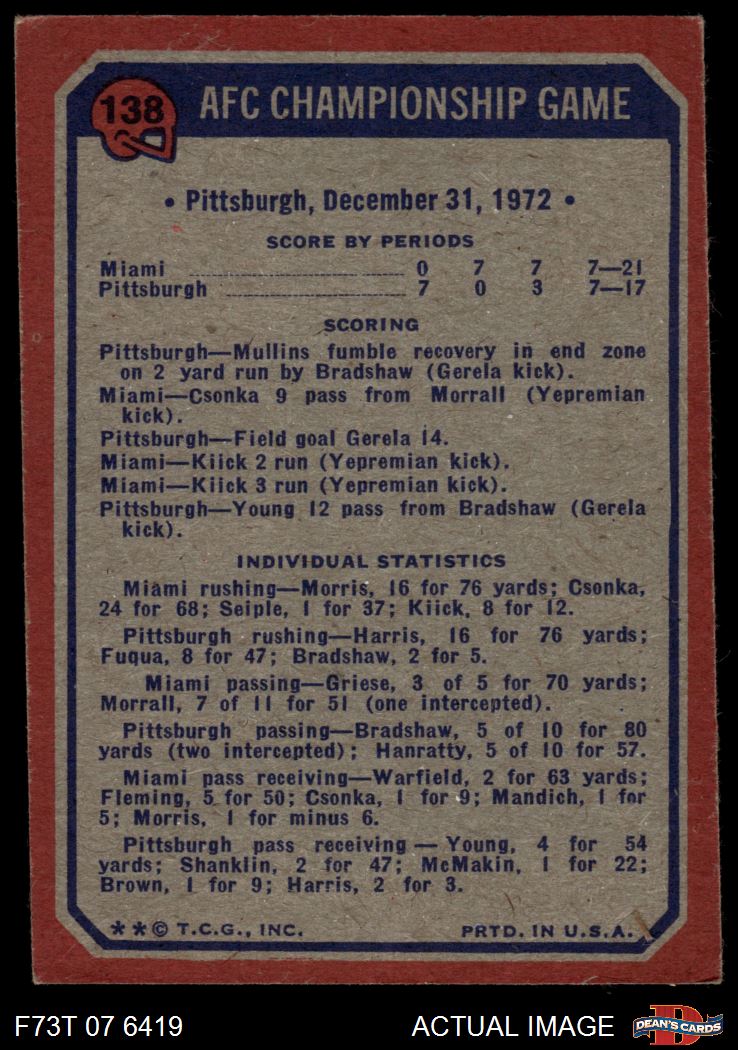 1973 Topps #138 AFC Title Game