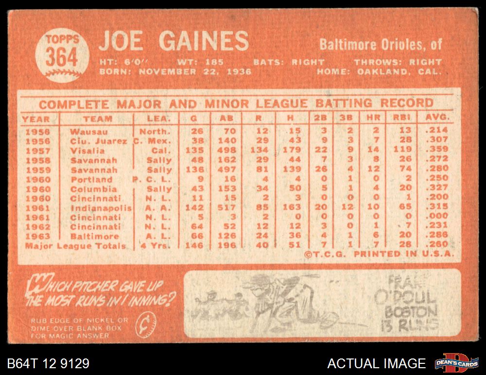1964 Topps #364 Joe Gaines 3 - VG
