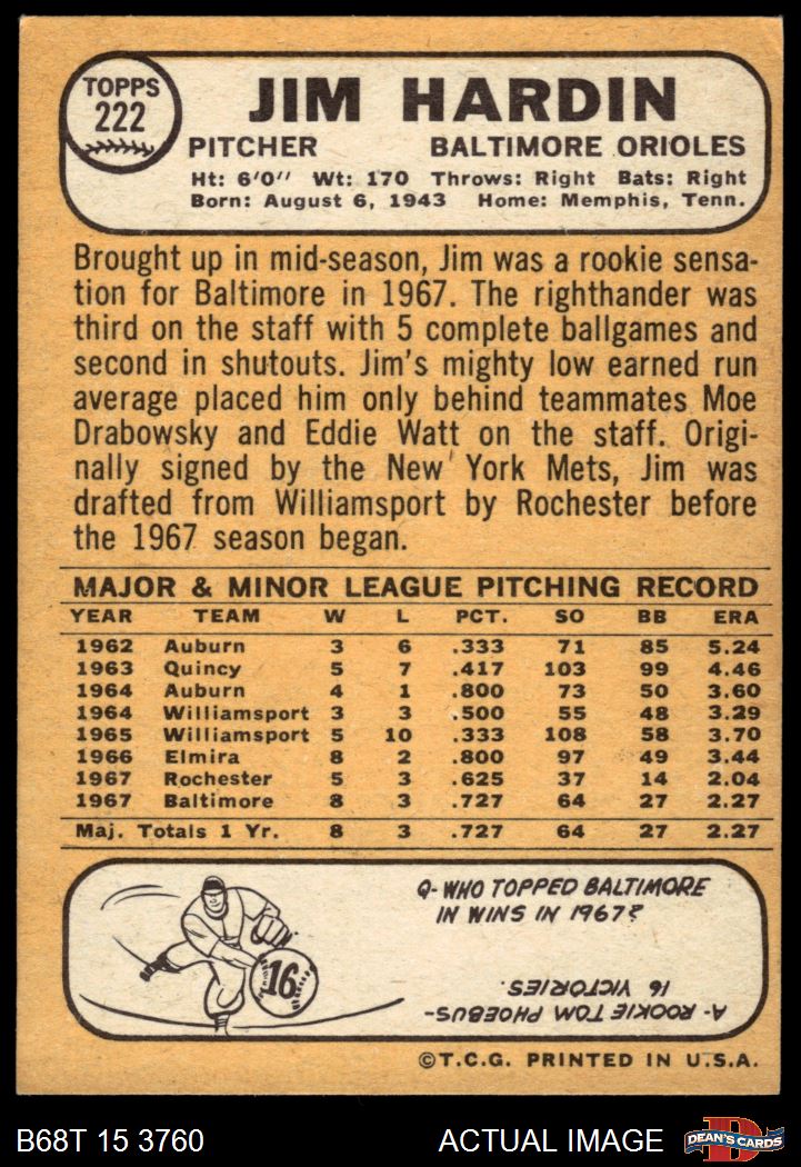 1968 Topps #222 Jim Hardin 6 - EX/MT