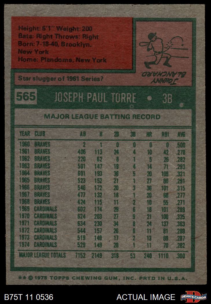 1975 Topps #565 Joe Torre 5 - EX