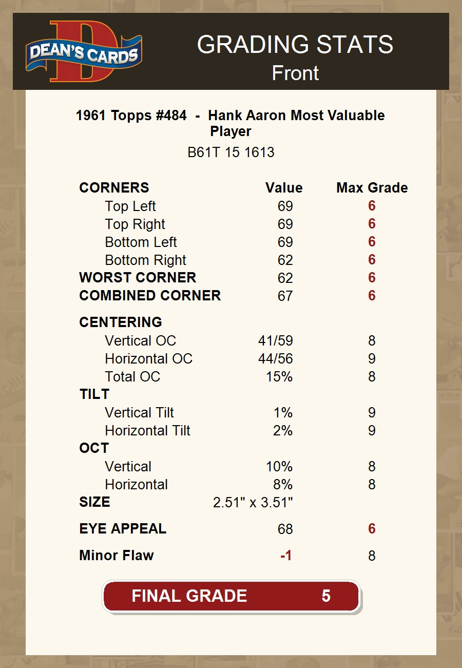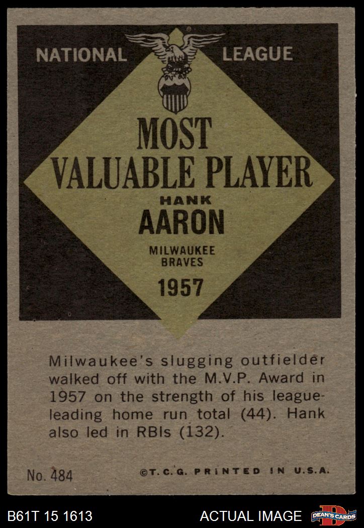 1961 Topps #484 - Hank Aaron Most Valuable Player 5 - EX