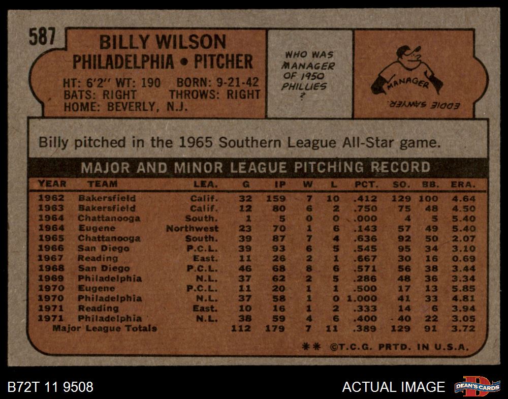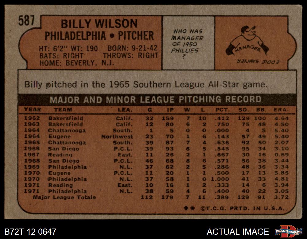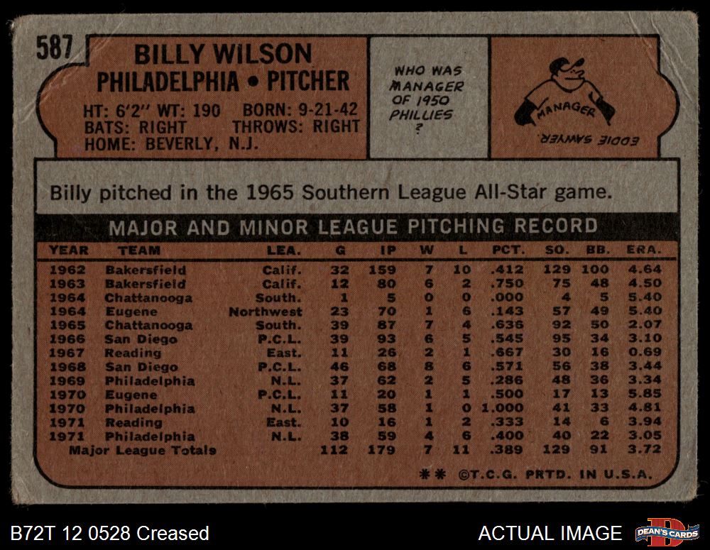 1972 Topps #587 Billy Wilson