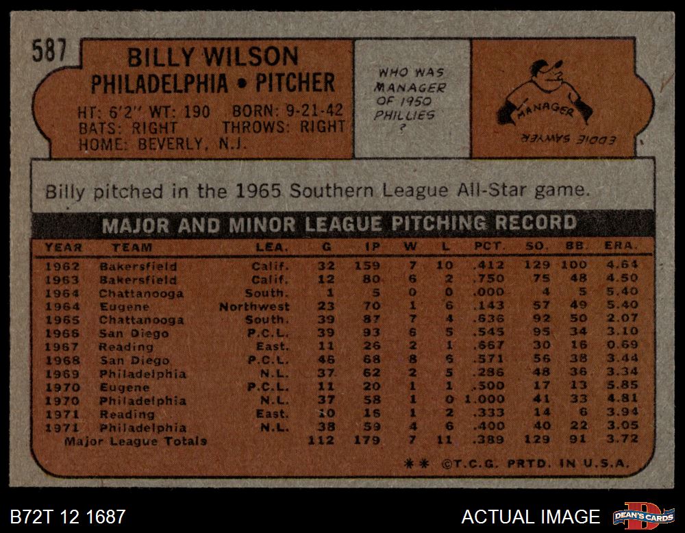 1972 Topps #587 Billy Wilson 5.5 - EX+