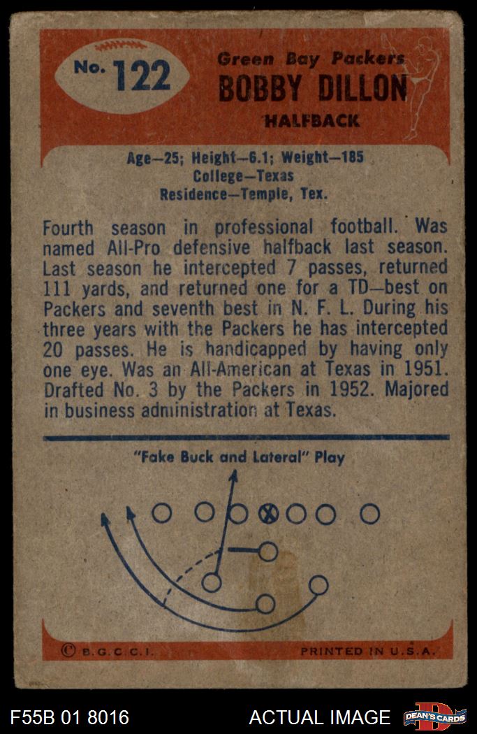 1955 Bowman #122 Bobby Dillon 2 - GOOD