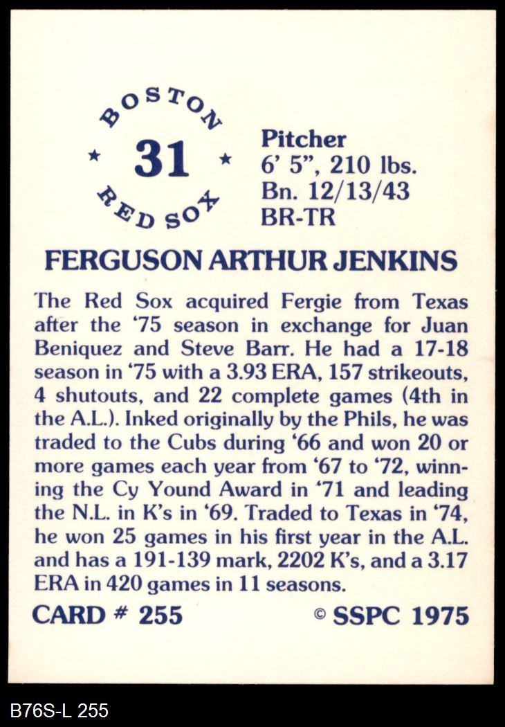1975 SSPC #255 Fergie Jenkins