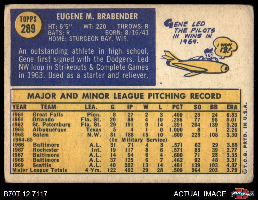1970 Topps #289 Gene Brabender 1.5 - FAIR