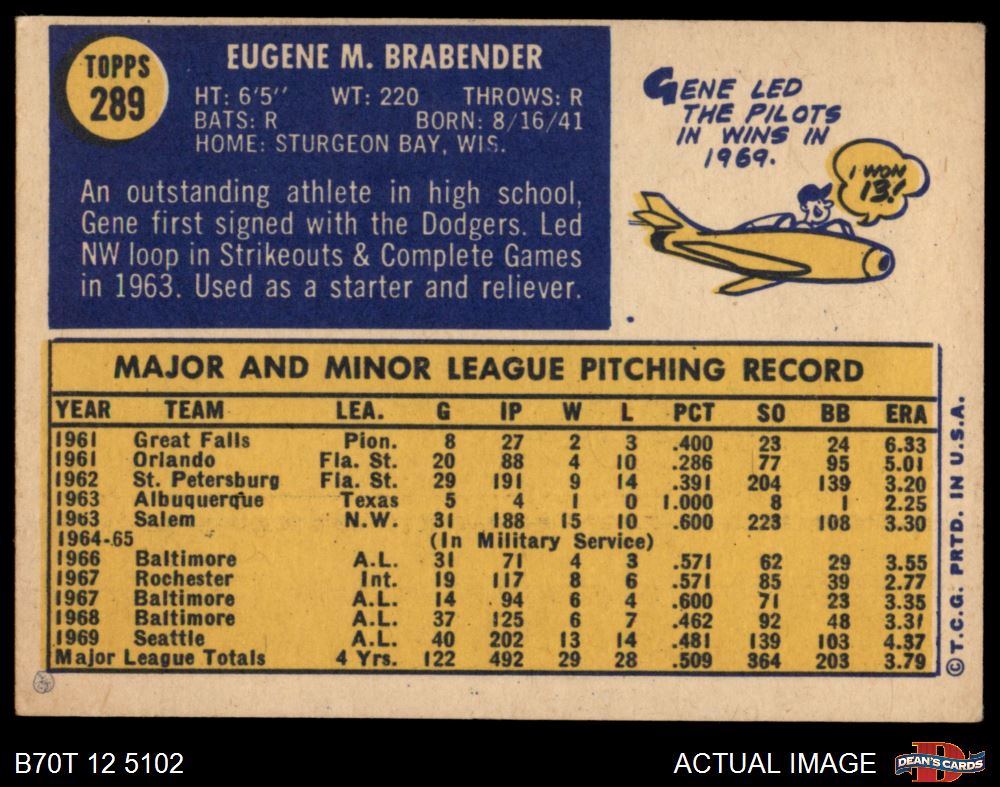 1970 Topps #289 Gene Brabender 4 - VG/EX
