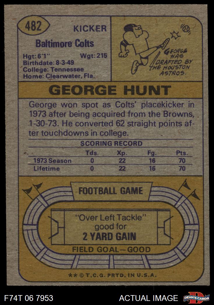 1974 Topps #482 George Hunt 6 - EX/MT