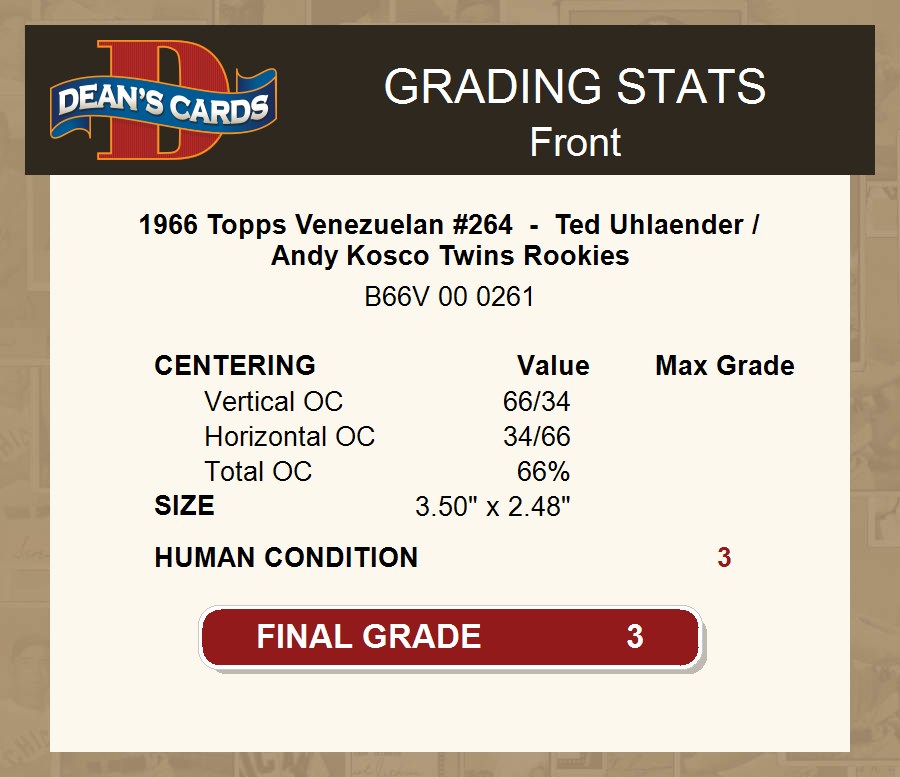 1966 Topps Venezuelan #264 - Ted Uhlaender / Andy Kosco Twins Rookies 3 - VG