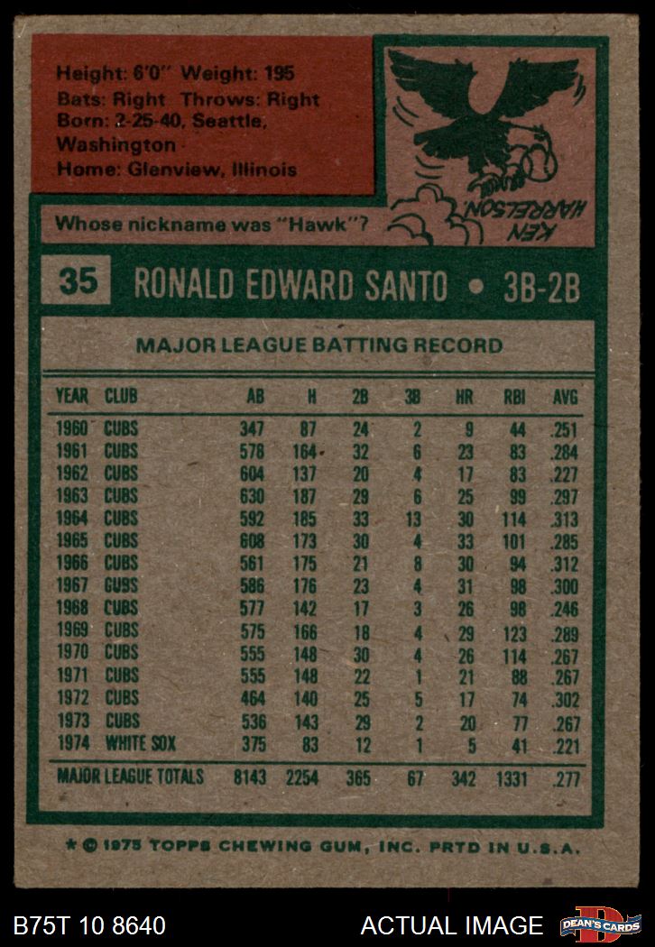 1975 Topps #35 Ron Santo
