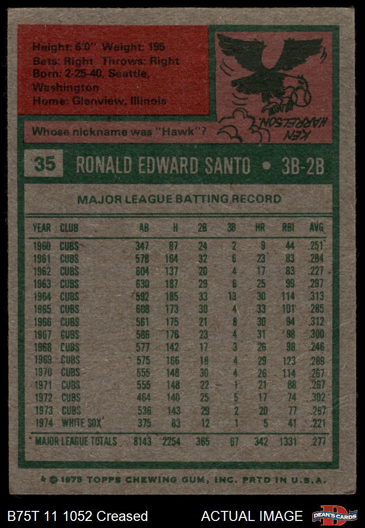 1975 Topps #35 Ron Santo 2 - GOOD