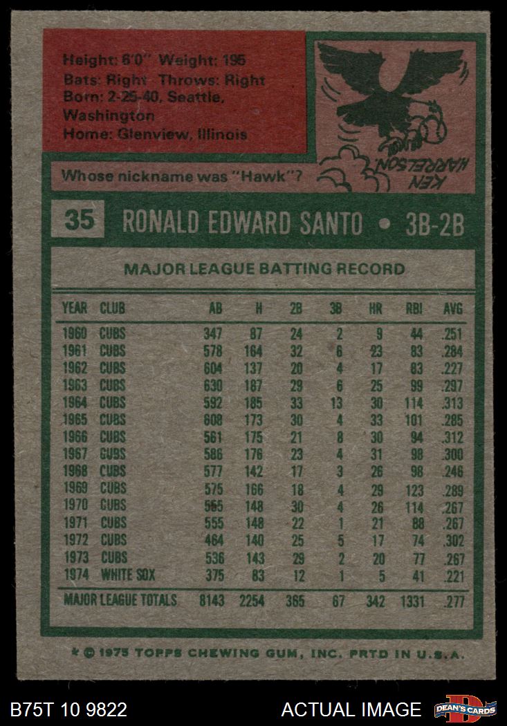 1975 Topps #35 Ron Santo 5 - EX